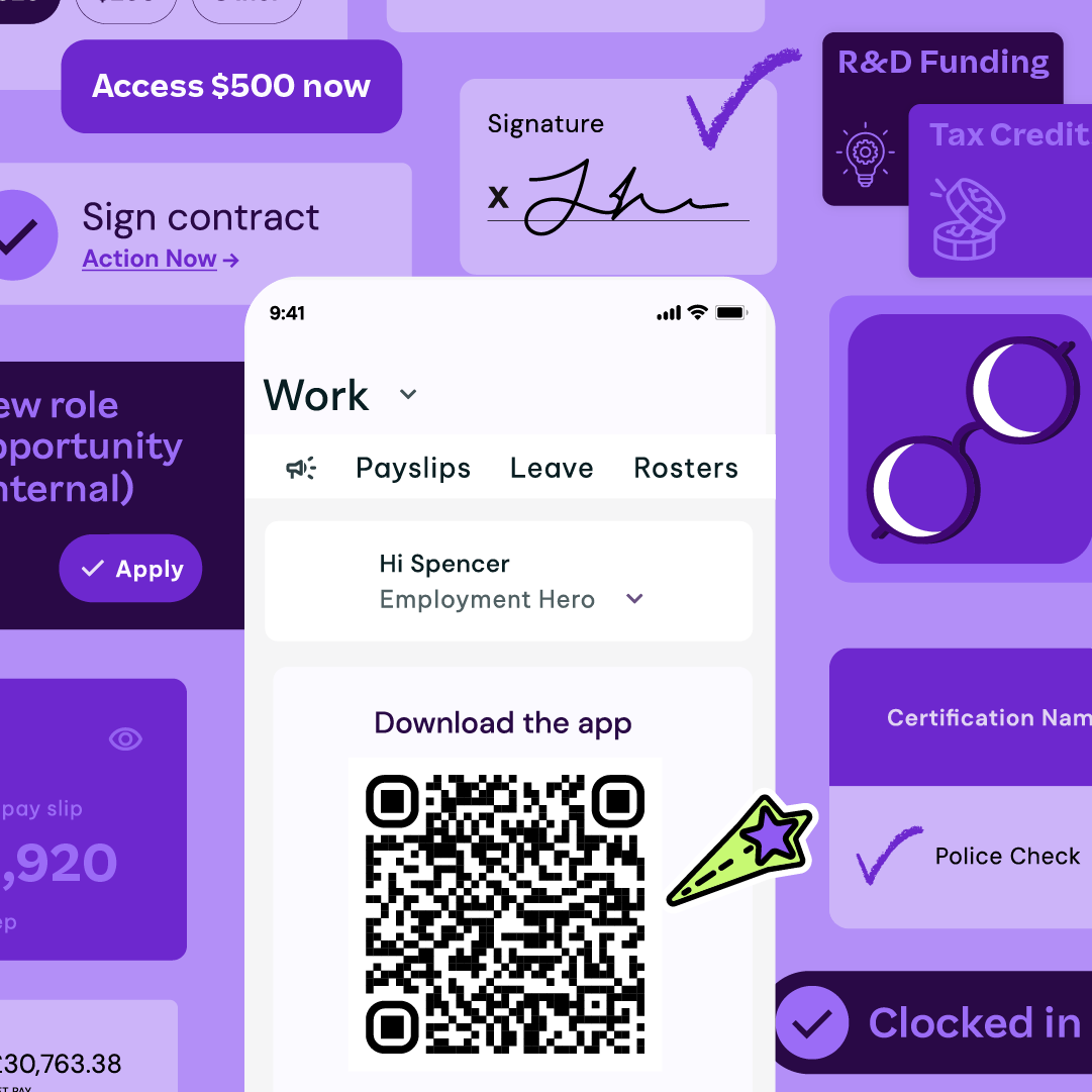 Employment Hero Work rolls work admin, wages, savings and exclusive benefits into one employee superapp.