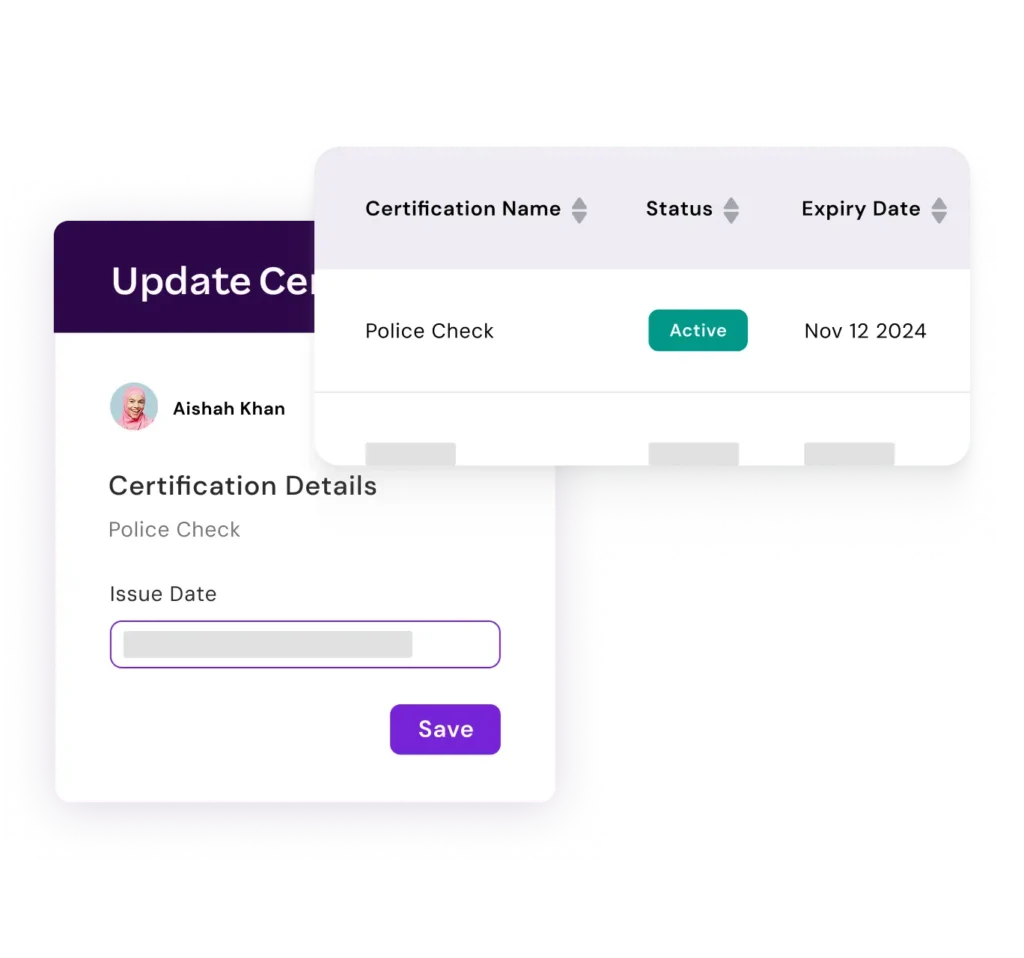 Track and manage employee certifications in one place. Approve and decline employee submitted certifications to ensure everyone is up to date with important qualifications.