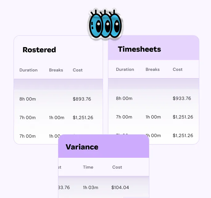 You don’t need to manually cross-check time and attendance data before processing the pay run. Compare rostered shifts to actual time worked and inconsistencies are flagged before approving employee timesheets.