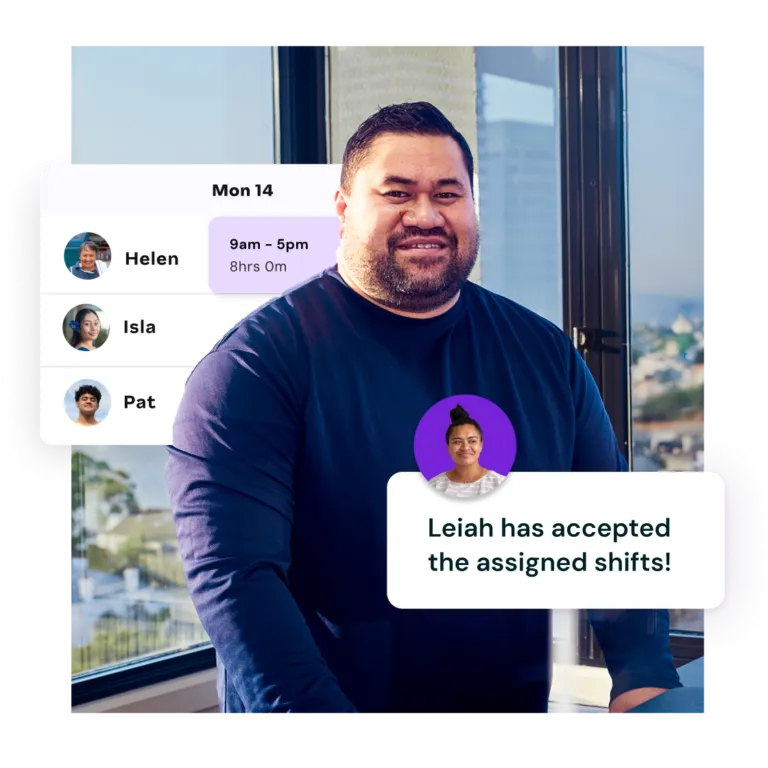 No more sending emails or chasing staff to finalise employee work schedules. Automatically notify employees of their scheduled shifts and give them the option to accept, swap, decline, or start shift bidding in real-time through the rostering app.