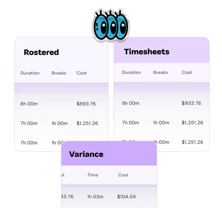 Remove the need to manually cross-check data before processing the pay run. Compare rostered shifts to actual time worked and identify inconsistencies before approving employee timesheets.