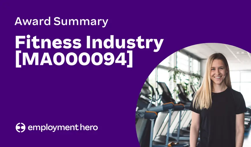Read more: Fitness Industry Award Summary [MA000094]The Fitness Industry Award covers employers and employees in the fitness industry, including fitness centers, classes and related services.