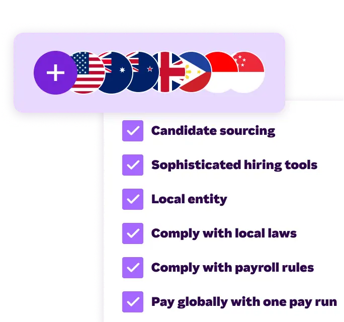 Scale into 180+ countries and access talent worldwide without setting up legal entities or navigating complex foreign regulations.